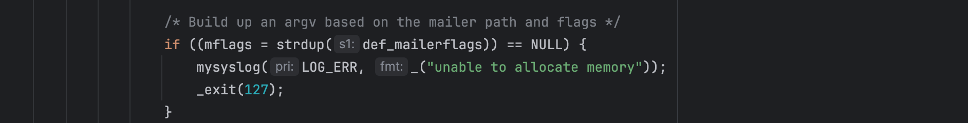 Fake mail flags entry ensuring send_mail() doesn’t segfault when it calls strdup() on flags: