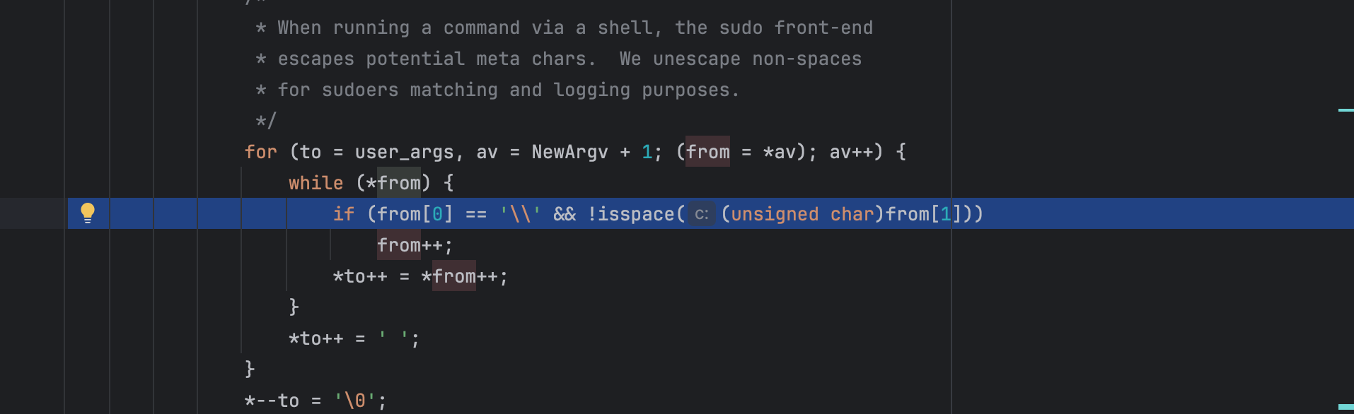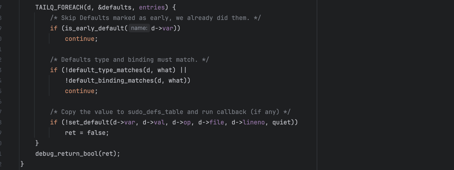 Now let's deep dive into the defect, specifically, the argument parsing logic in sudoers.