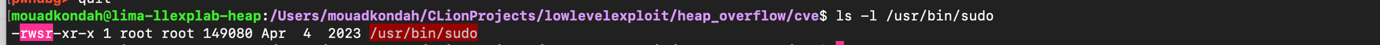 However, this is not a fatal limitation. As explained earlier, by ending the argument with a trailing backslash, the copy loop will continue writing into the heap until it encounters a null byte (from != 0x00). In practice, this means we can simply fill the intervening gap with garbage data until we reach the first defaults structure, then carefully place our crafted payload. This allows us to corrupt the sudoers data structure, after which the subsequent function logic will complete the job.