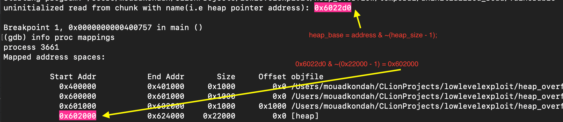Because heap bases are always page aligned typically 4 KB, the lower 12 bits are 0, that is, maximum entropy is reduced. If the ASLR varies 32 bits, that’s effectively \( 2^(32−12) = 1,048,576 \) page positions.
