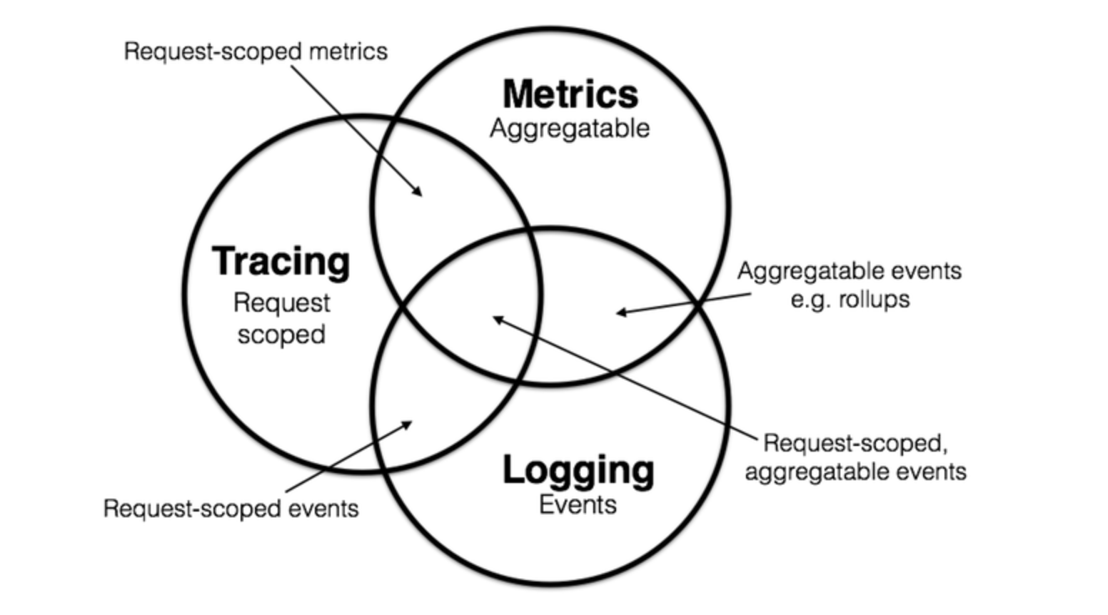Logging, tracing, and metrics are three key areas to achieve observability: