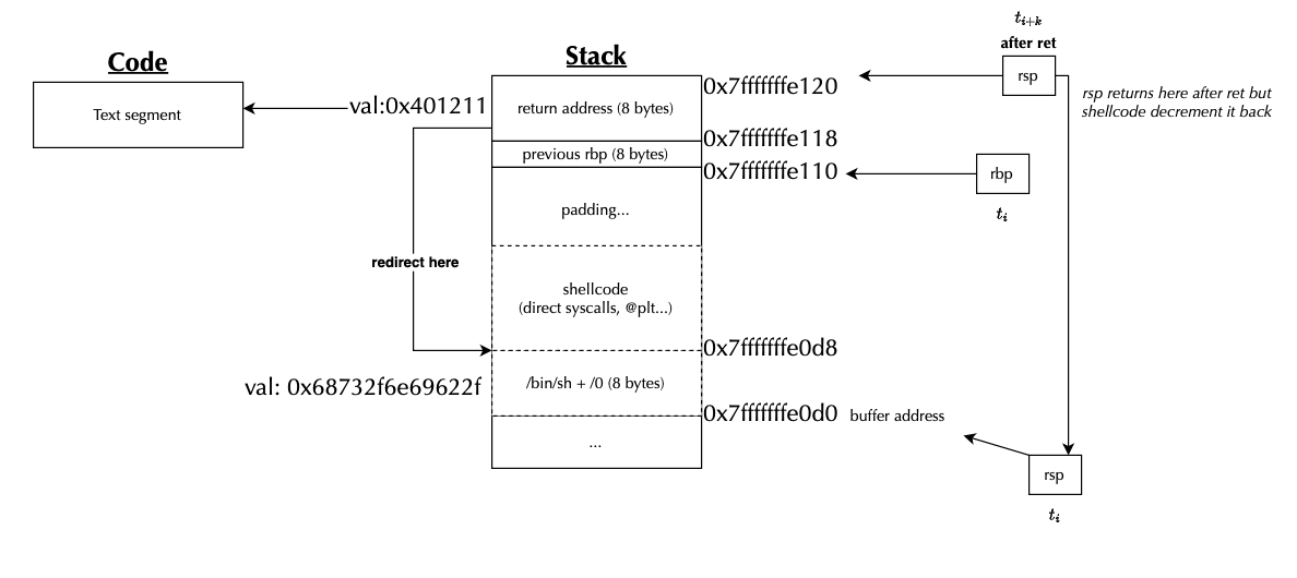 We begin by discussing how stack overflow exploitation works, specifically developing exploits under different scenarios: 1.when the stack is executable (NX off), we inject and run shellcode calling directly system calls or through libc. 2.when the stack is non-executable (NX on) we use Return-Oriented Programming (ROP) including ret2resolve and Sigreturn-oriented programming (SROP).