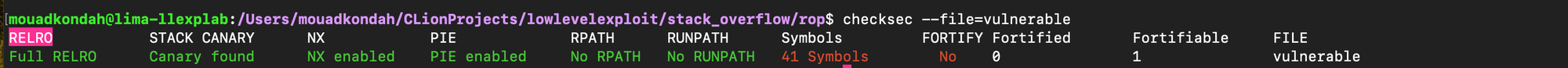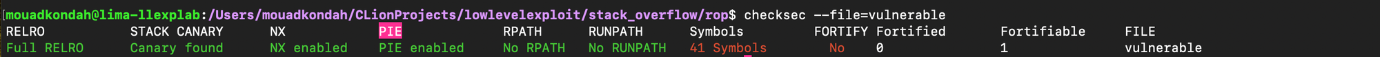 Address Space Layout Randomization (ASLR) is one of the most effective mitigation techniques against stack vulnerabilities exploitation. It works by randomizing the base address of segments of processes making it significantly harder for an attacker to reliably exploit stack overflow vulnerabilities (they typically need an information leakage like address of a gadget). When PIE or Position Independent Executables (PIE) is enabled, the program itself is loaded at random base address i.e it randomizes the starting addresses of the program’s code and data segments; again raising the difficulty for attackers seeking to exploit gadgets.